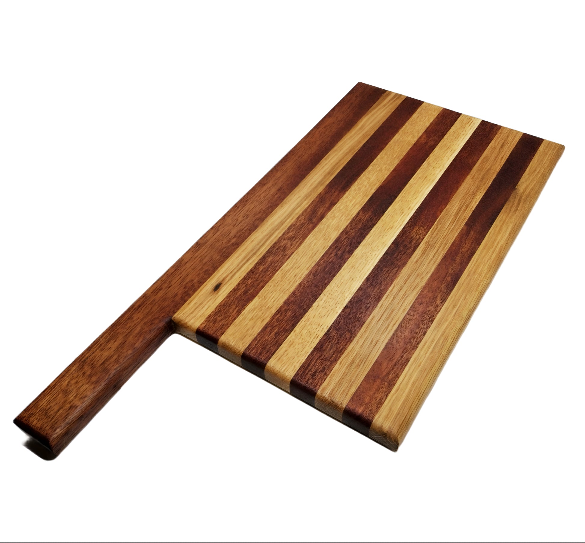 Handmade Mixed Hardwoods Edge-grain Bread board/Cutting Board - with Handle - Reversible - B