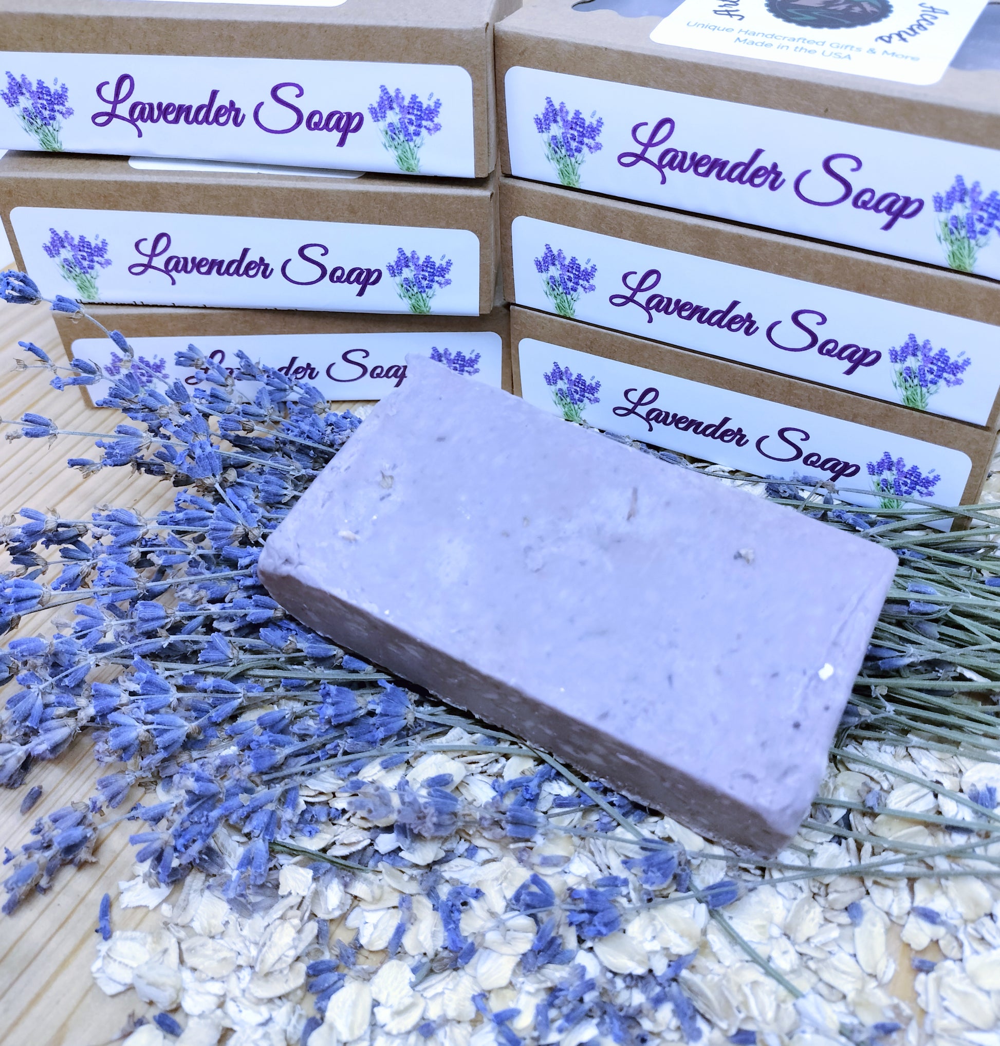 Fragrant, delightfully floral, healing, calming, and refreshing Lavender soap. Your skin will love this beautiful, all-natural handmade soap - carefully handcrafted & homemade in small batches. Our proprietary formula includes the finest high-quality organic ingredients such as Soothing Shea Butter, Nourishing Coconut Oil, Replenishing Olive Oil, Exfoliating Oatmeal, Moisturizing Vegetable Glycerin, Rejuvenating Lavender Essential Oil and Lavender Flowers. Give the gift that keeps on giving with this luxurious, handmade soap for glowing, healthy, radiant skin! With our current selection of 6 amazing varieties, everyone is sure to find their personal favorites. Enjoy a $10.00 discount off any 6-soap order by using code GIFT6SOAPS at checkout. Try our homemade soaps today and find out why customers love it!